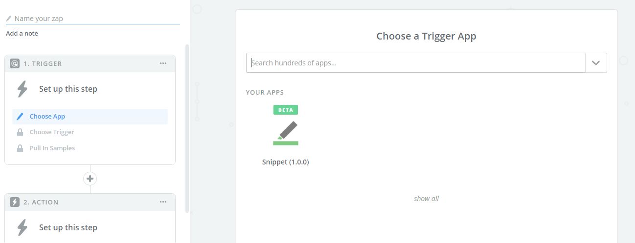 2. Choose Snippet as your Trigger App