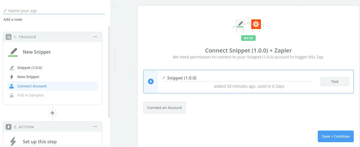 4. Connect your Snippet account with Zapier.