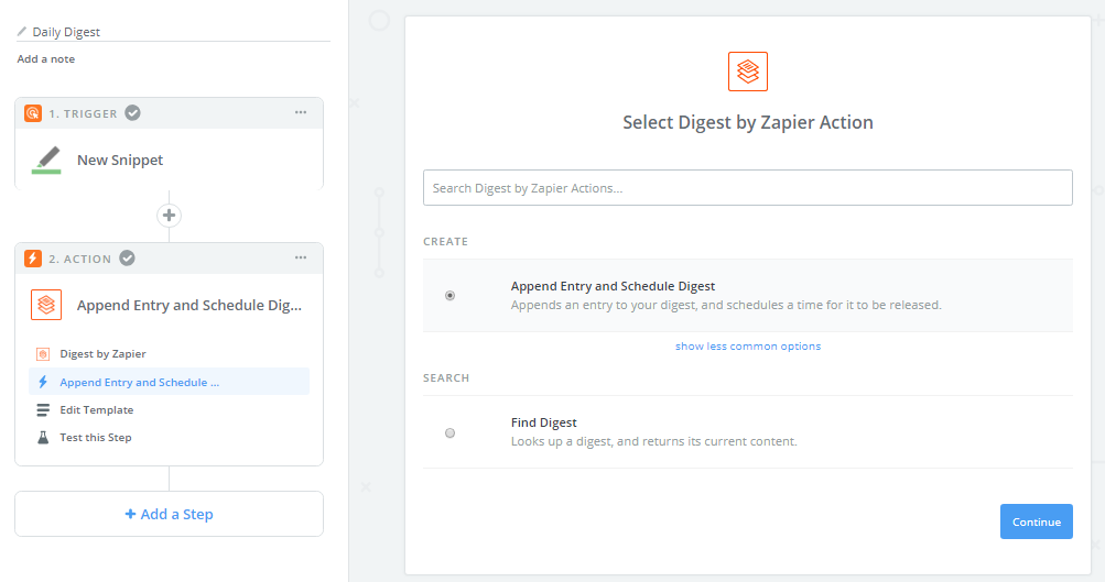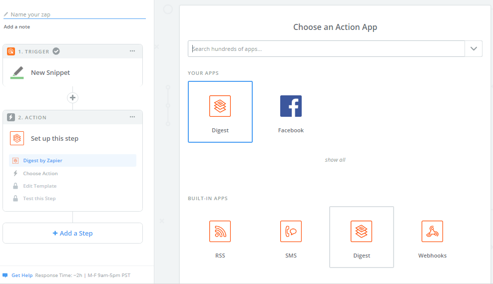 In our case Digest from Zapier. Select the Digest icon from the list of application.